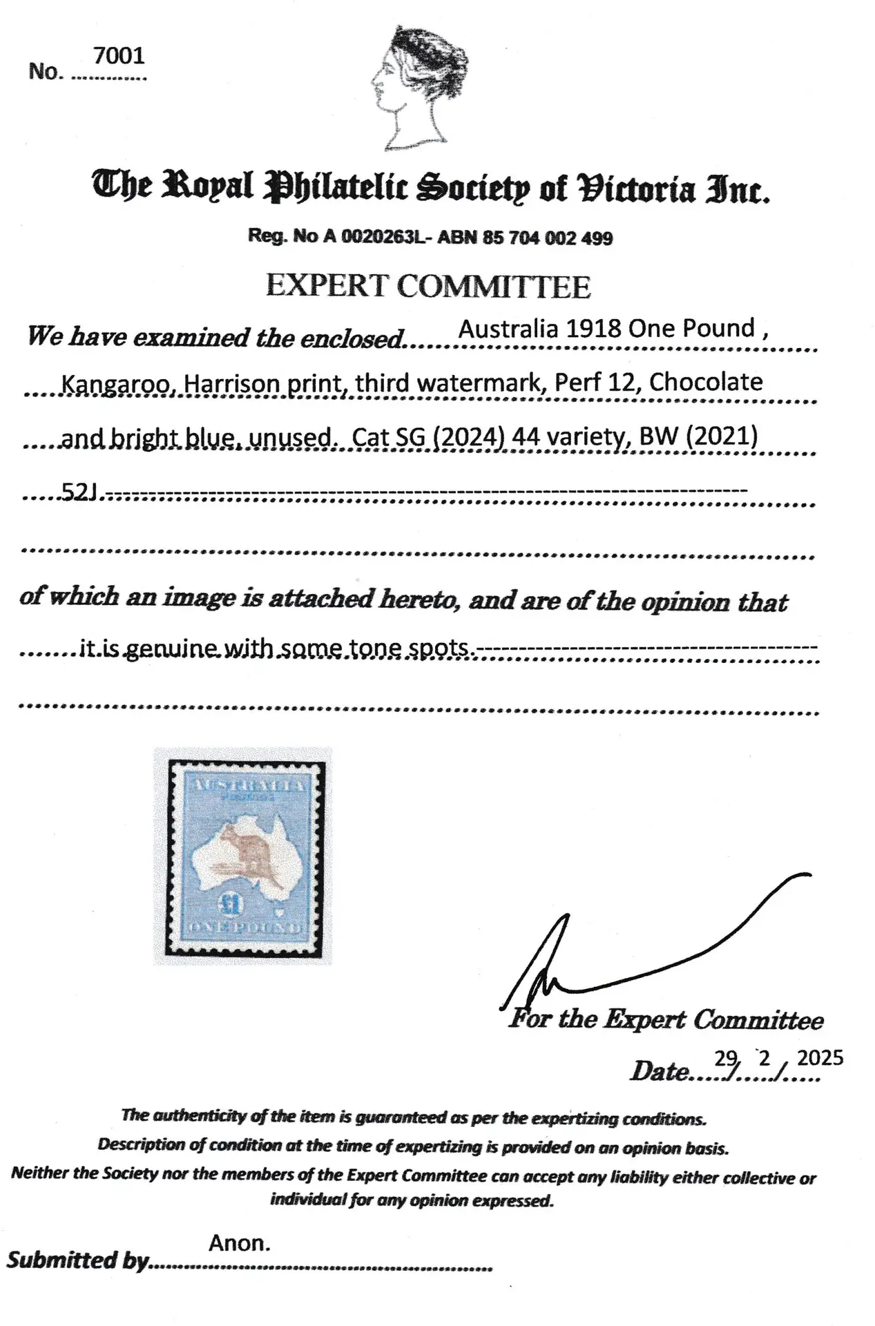 RPSV members are entitled to one free certificate per financial year. Indicate on the Application for Certificate that you are an RPSV member, and that this is a request for your free certificate.